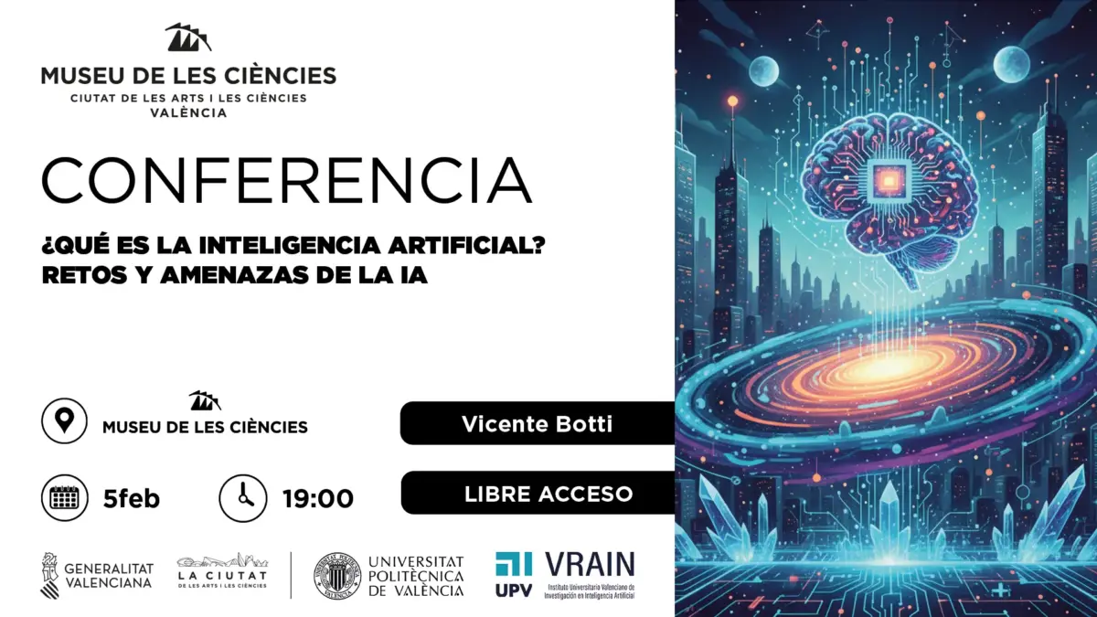 València, 3 de febrero de 2026. El Instituto Universitario Valenciano de Investigación en Inteligencia Artificial (VRAIN) de la Universitat Politècnica de València (UPV) y la Ciutat de les Arts i les Ciències (CAC) ofrecerán un ciclo de 6 conferencias gratuitas para divulgar la inteligencia artificial a la ciudadanía.